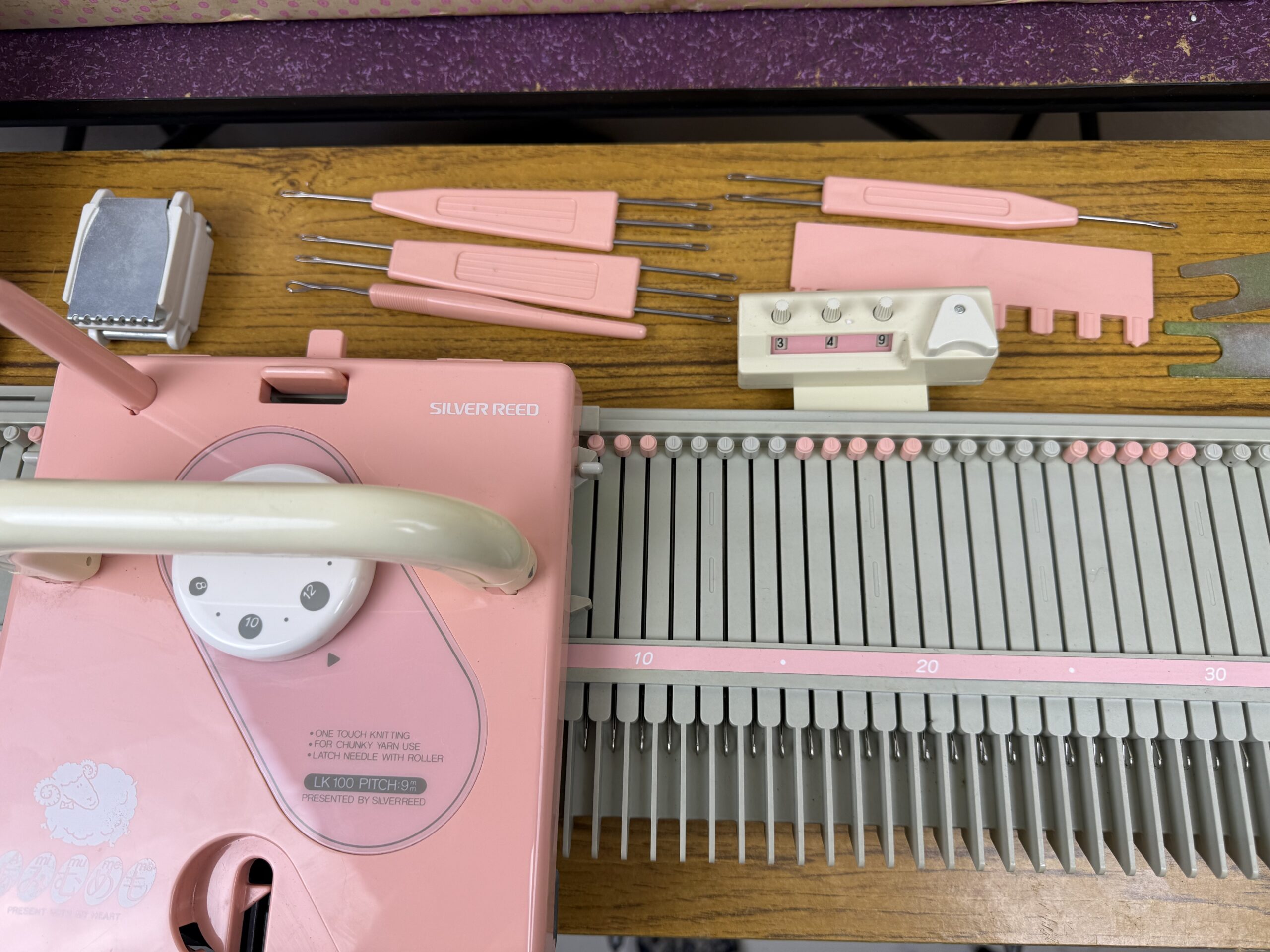 Це вʼязальна машина 3 класу, 90 голок, відстань- 9мм, виготовлена компанією Silver Reed у кінці  90-х рр для внутрішнього ринку Японії
